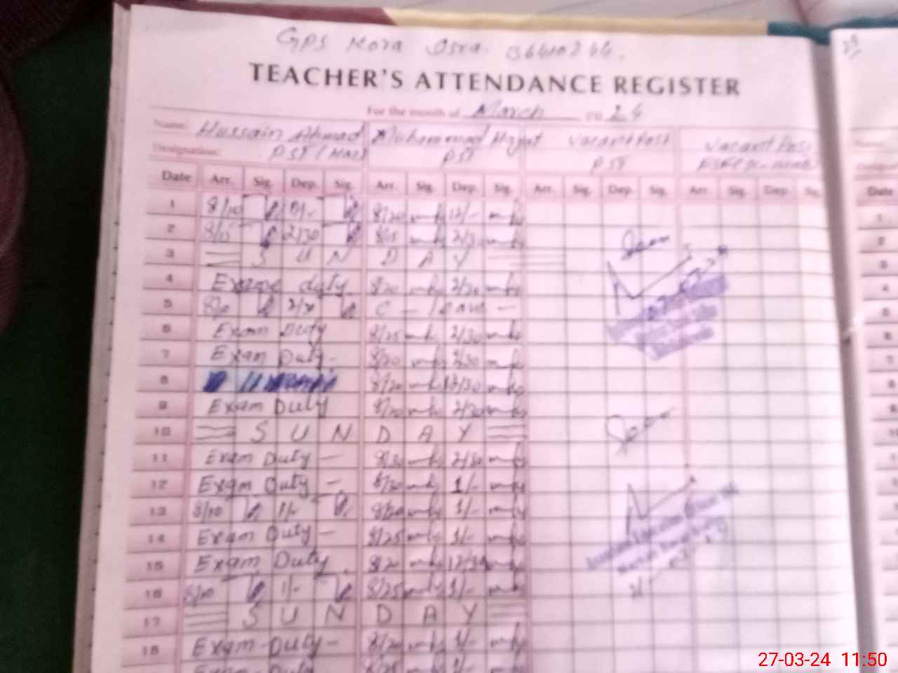 | 36**** | Hu**** Ah**** | 1 | 1 | 0 | 0 | 0 | 0 | 0 | 0 | 0 | 0 | 0 | Exam Duty |