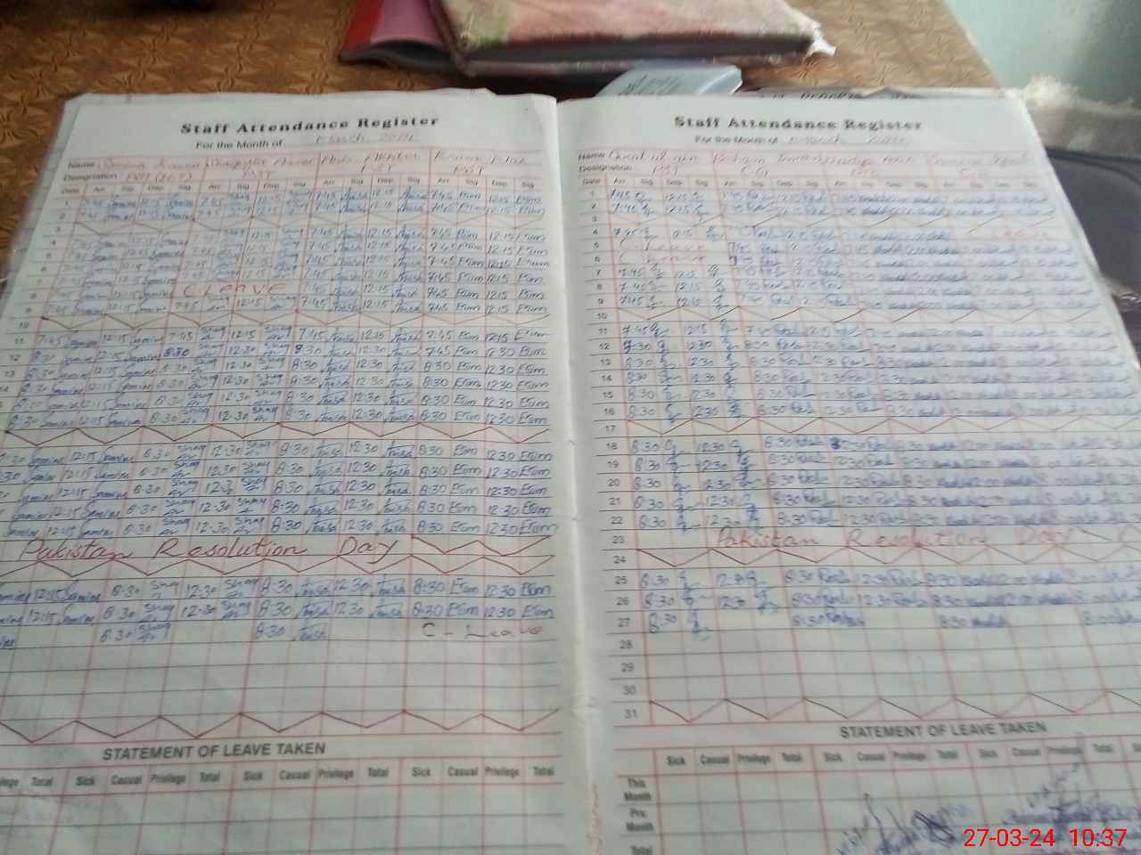 | Leave | Duty | Absent | Maternity | Medical | Ex- Pak |