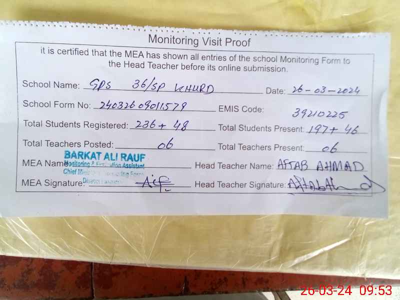| EMIS Code: 39210225 | Name of School: GPS CHAK NO. 36/SP KHURD | |||