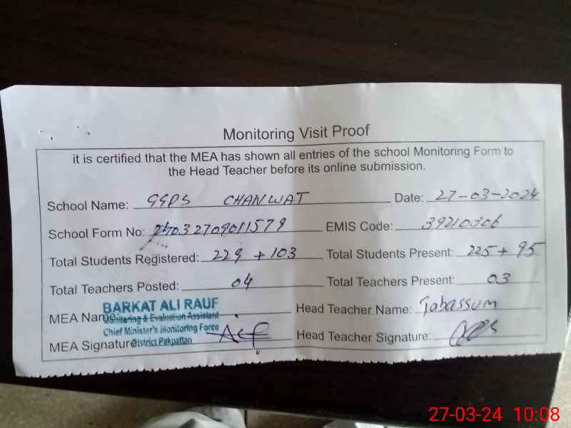 | EMIS Code: 39210306 | Name of School: GGPS CHANWAT | |||