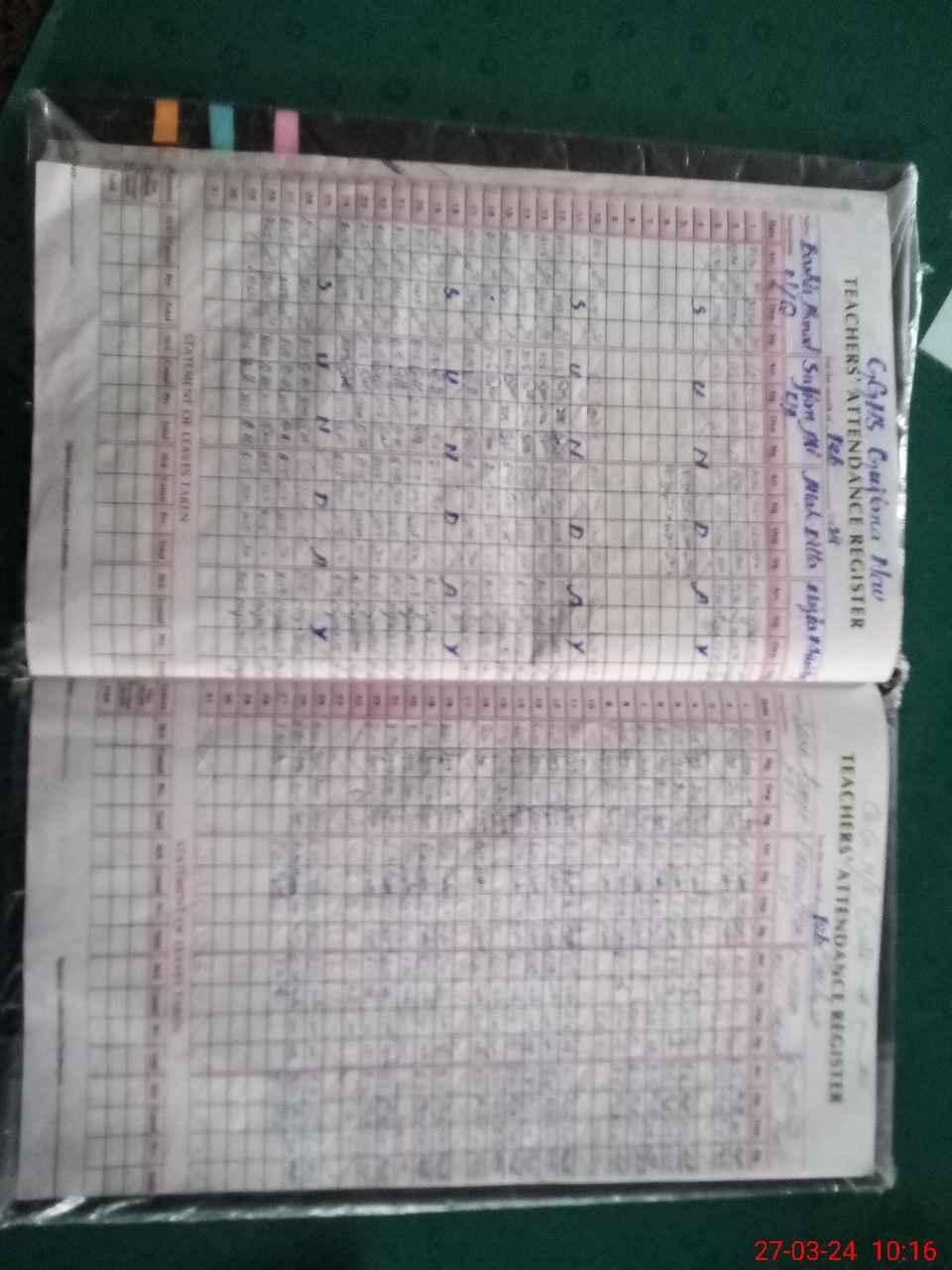 | Remarks (Use Separate Page if Required): 05 classes are running without teachers During visit classes are taking examination so nazra and number of periods are indorsed as zero | |||||