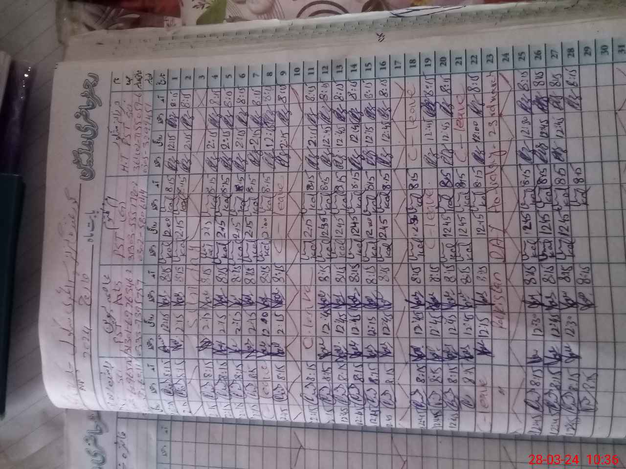 | Leave | Duty | Absent | Maternity | Medical | Ex- Pak |