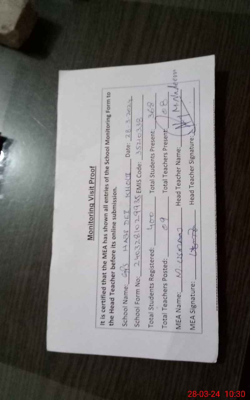 | Certified that this School was Inspected by the Undersigned MEA/DMO Today and the Information Stated Above is as Per Record. | |||||