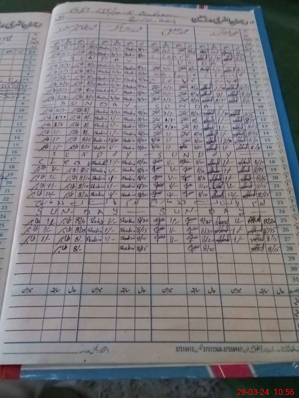 | CNIC | Full Name | Designation | R/C | Absence During Last Calender Month |