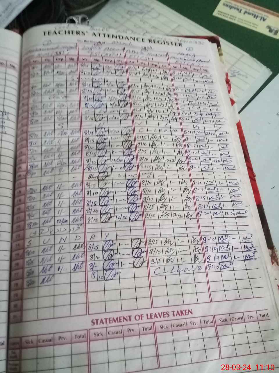 | Leave | Duty | Absent | Maternity | Medical | Ex- Pak |