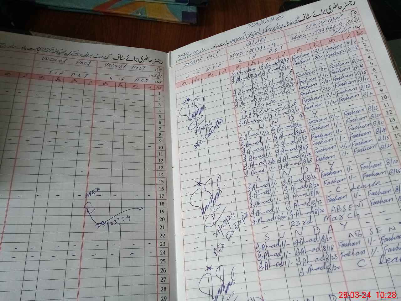 | CNIC | Full Name | Designation | R/C | Absence During Last Calender Month |