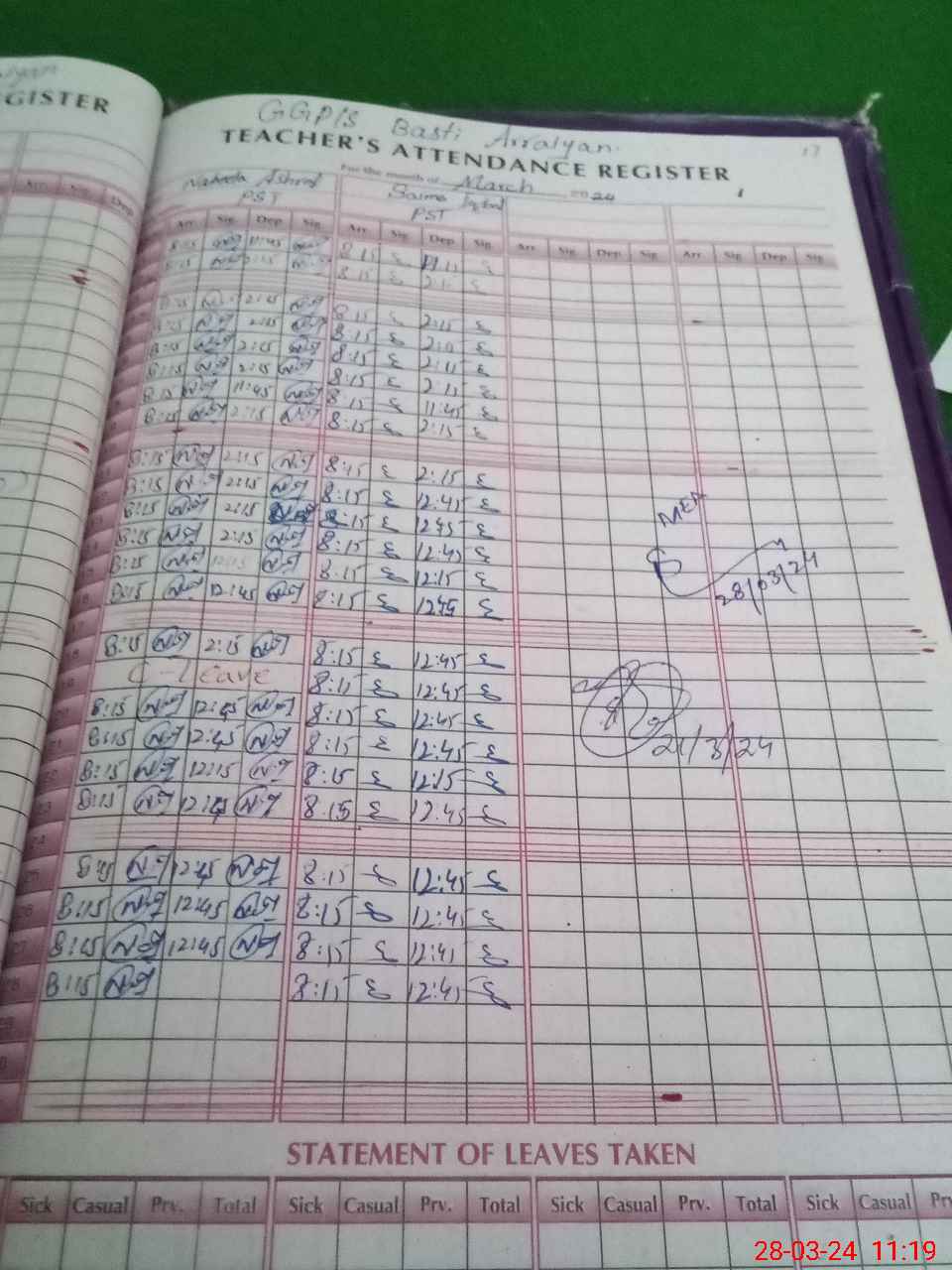 | Leave | Duty | Absent | Maternity | Medical | Ex- Pak |