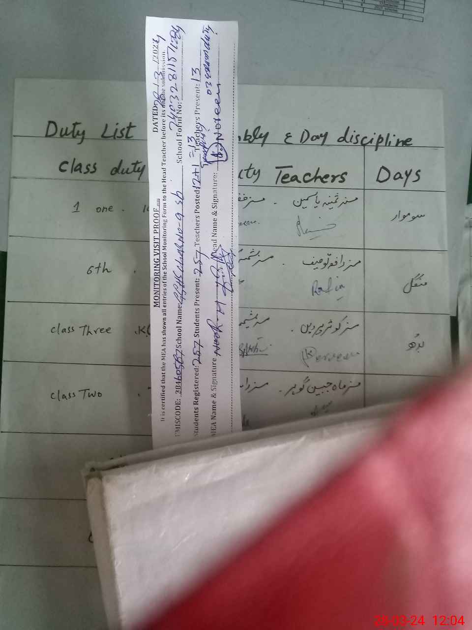 | Certified that this School was Inspected by the Undersigned MEA/DMO Today and the Information Stated Above is as Per Record. | |||||