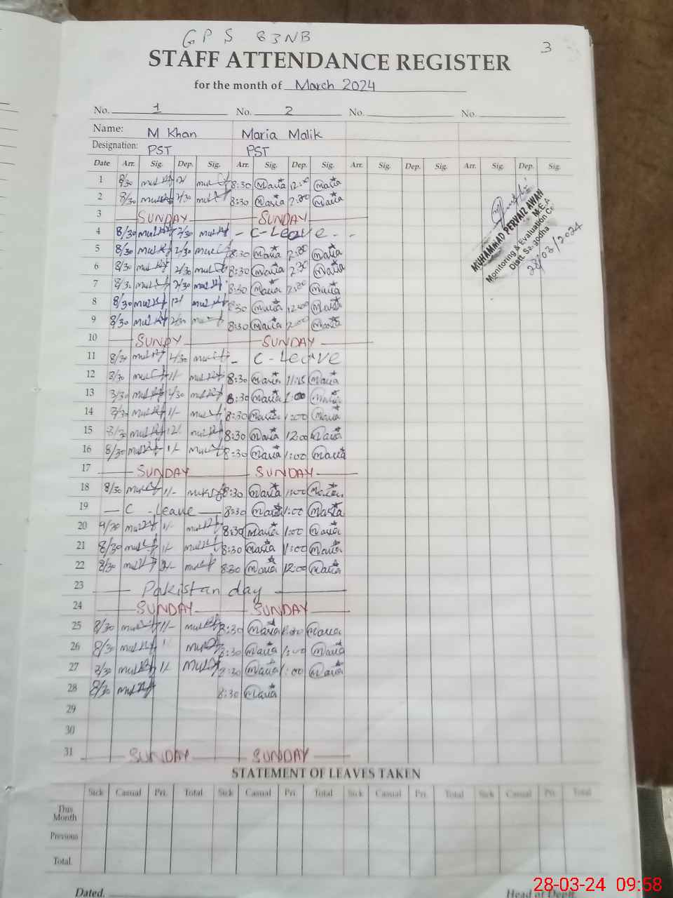 | Name: MU**** KH**** Designation: (School Headmaster's/Headmistress's) PST Phone/Cell Number: 03**** |