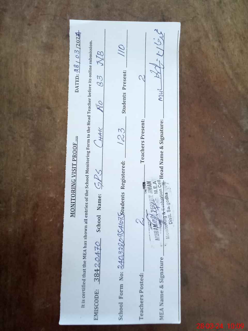 | EMIS Code: 38420470 | Name of School: GPS CHAK NO.83 NB | |||