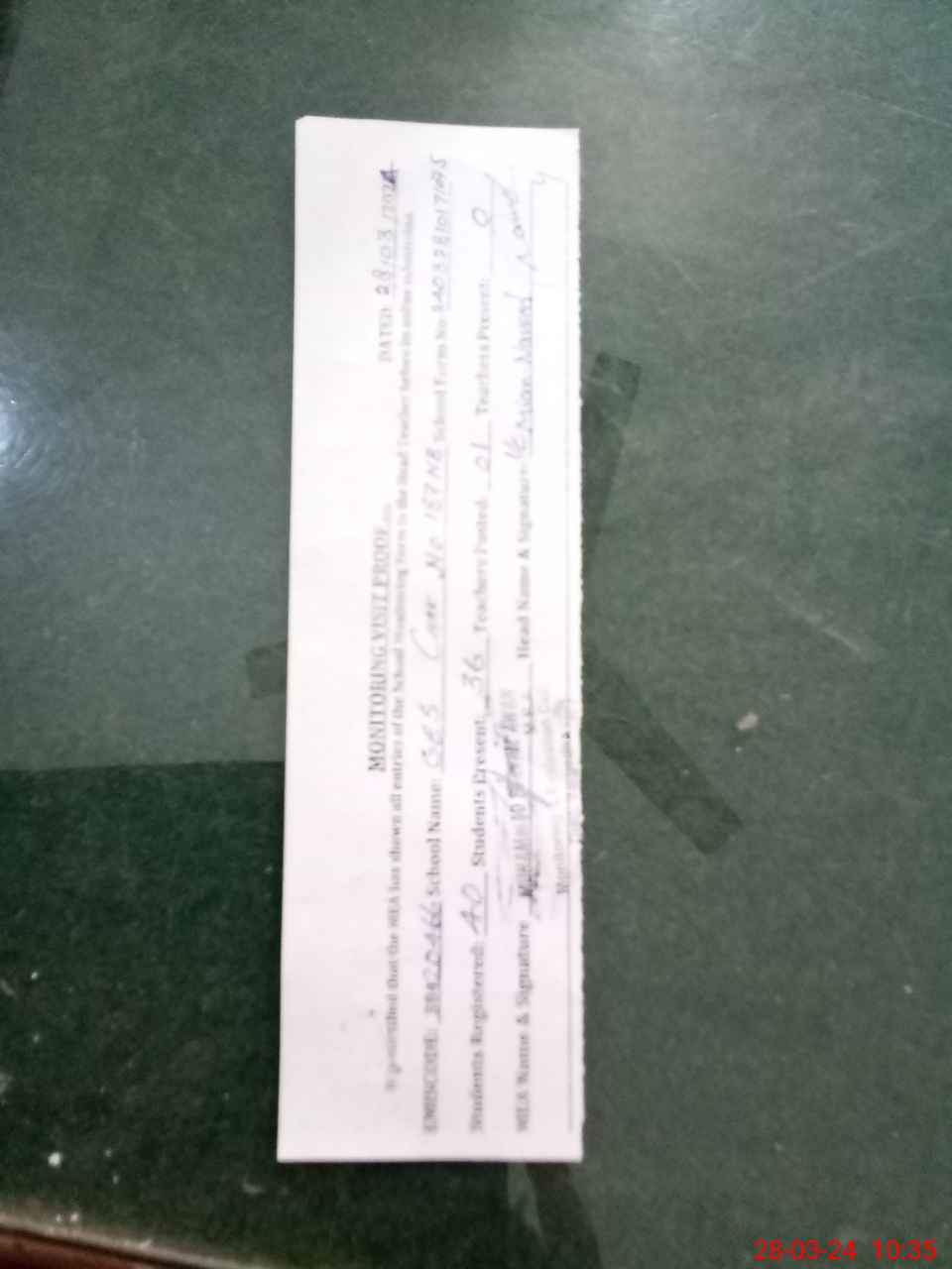 | Remarks (Use Separate Page if Required): Temporary Teacher available in the school and school fail to provide the fresh bank statements of NSB and FTF at the time of visit and form D also | |||||