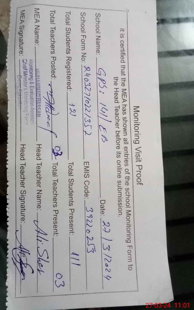 | EMIS Code: 39220253 | Name of School: GPS 141 EB | |||