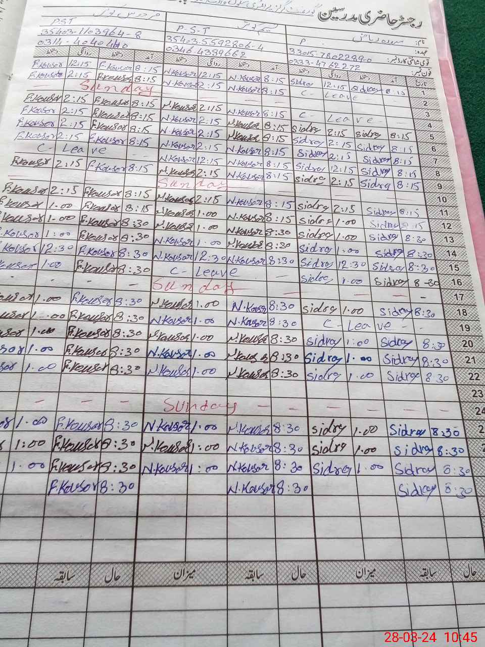 | Leave | Duty | Absent | Maternity | Medical | Ex- Pak |