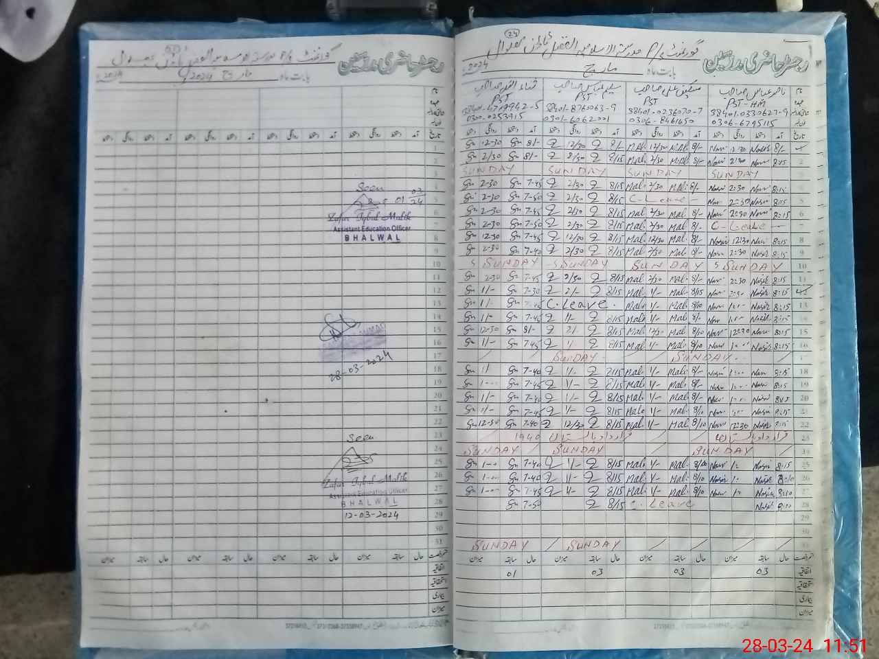 | Name: Sa**** Ab**** Designation: (School Headmaster's/Headmistress's) PST Phone/Cell Number: 03**** |