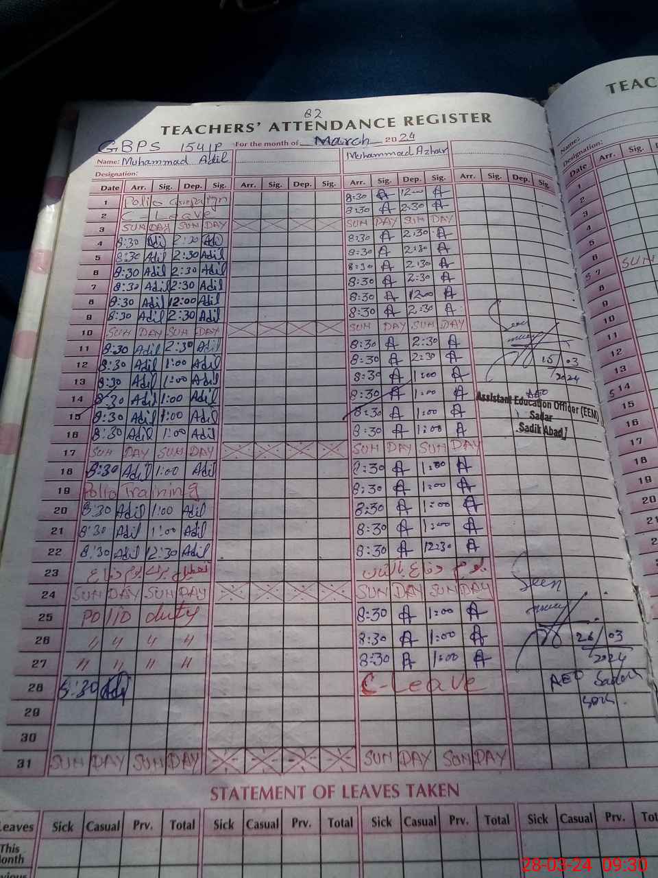 | Leave | Duty | Absent | Maternity | Medical | Ex- Pak |