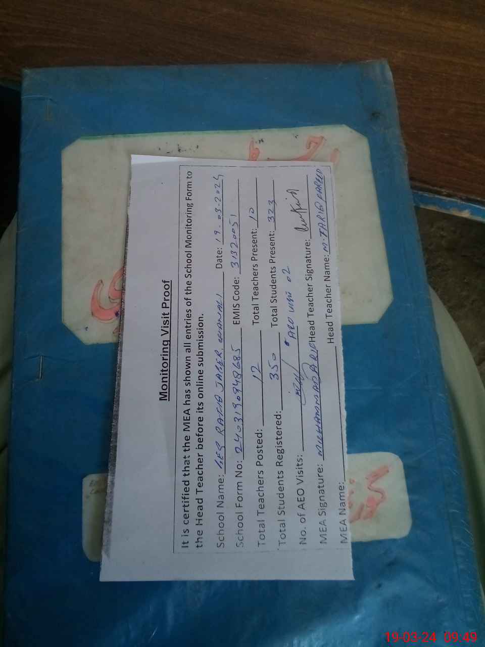 | Certified that this School was Inspected by the Undersigned MEA/DMO Today and the Information Stated Above is as Per Record. | |||||