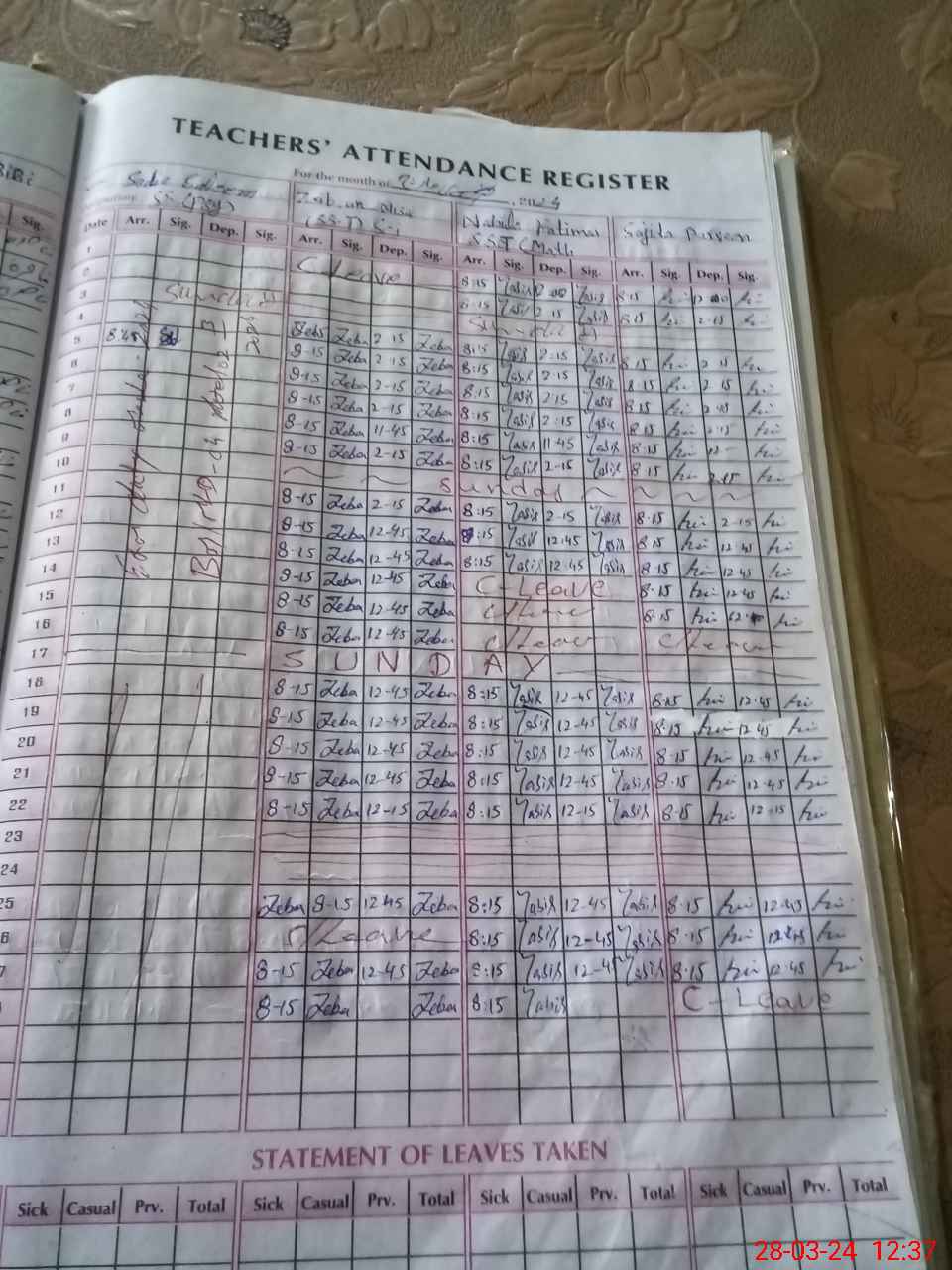 | 36**** | Ka**** Ak**** | PST | Temporary | 3 | 0 | 0 | 0 | 0 | 0 | 0 | 0 | 3 | Exam Duty |