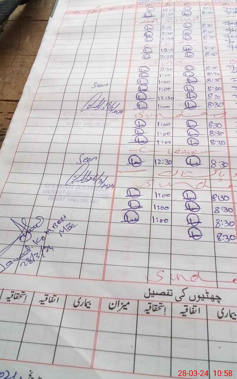 | CNIC | Full Name | Designation | R/C | Absence During Last Calender Month |