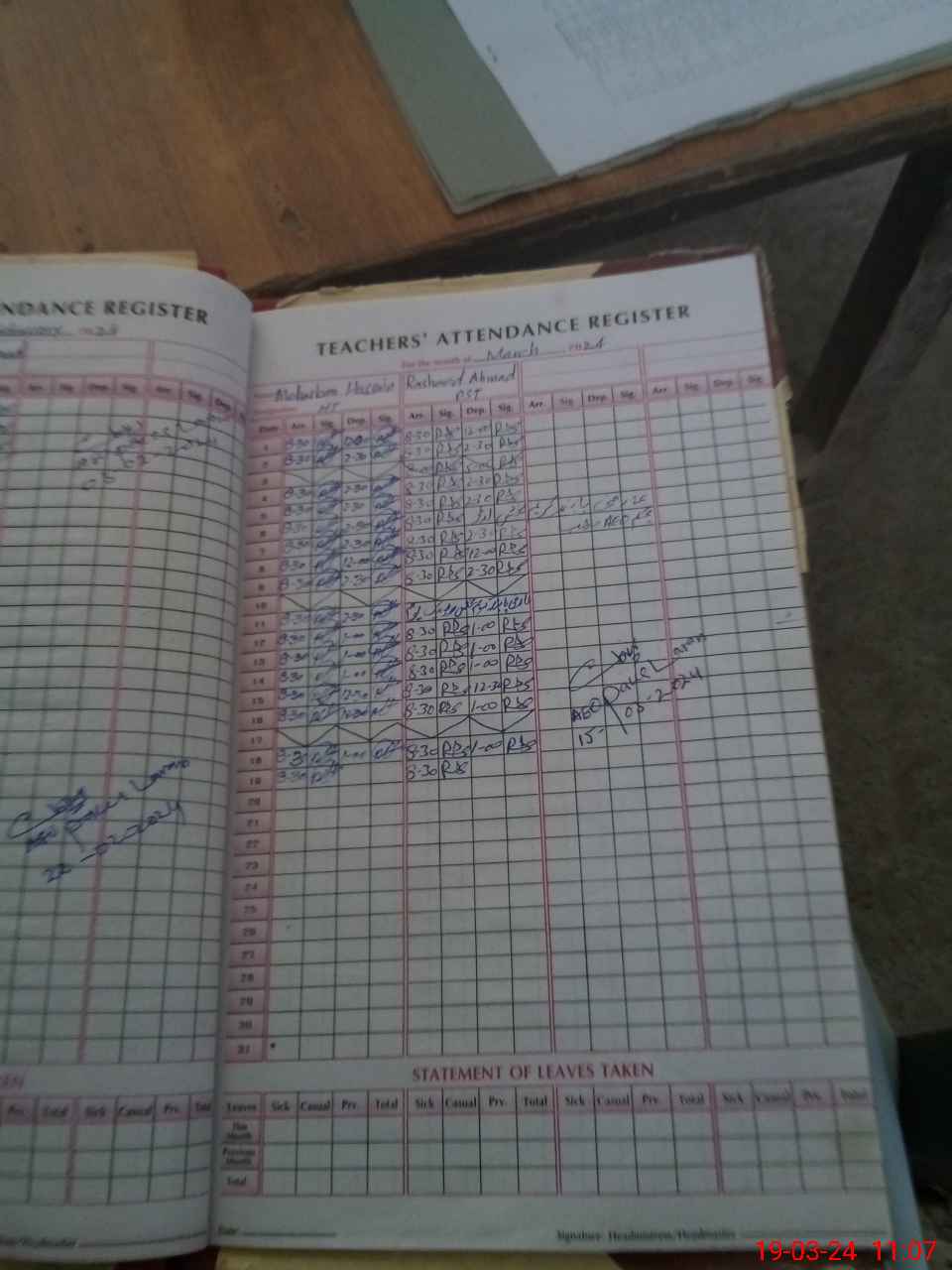 | CNIC | Full Name | Designation | R/C | Absence During Last Calender Month |