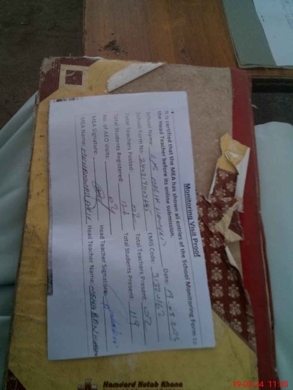 | Attendance Register | Head Teacher | MEA with School | Visit Proof |
