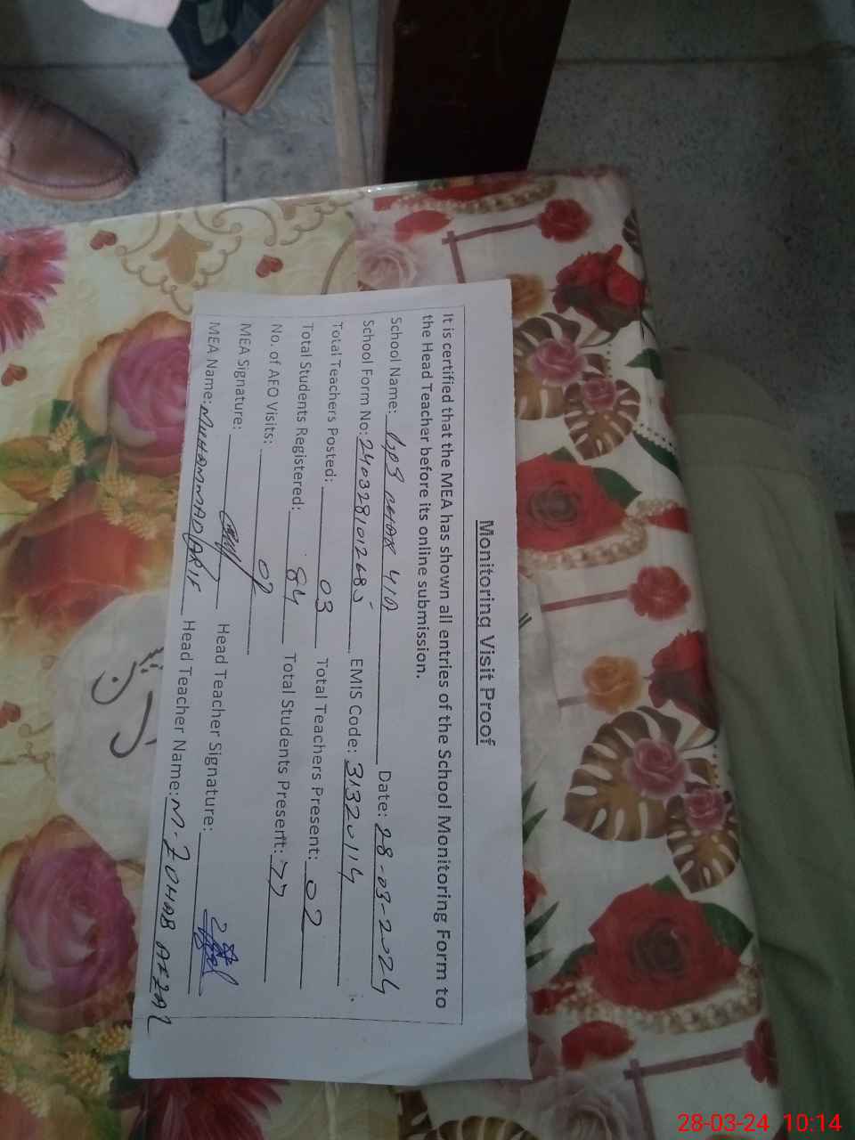 | Certified that this School was Inspected by the Undersigned MEA/DMO Today and the Information Stated Above is as Per Record. | |||||