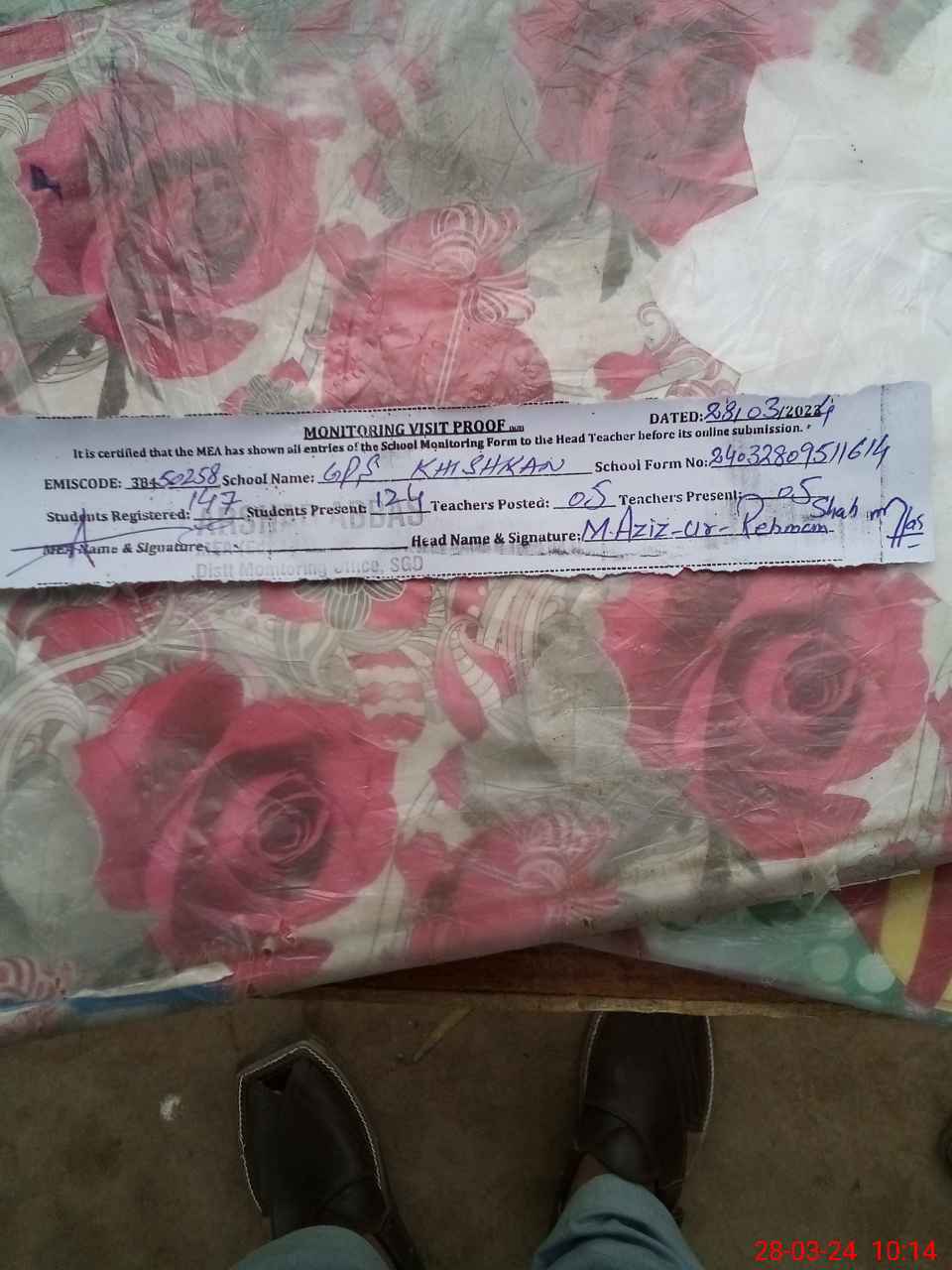 | EMIS Code: 38450258 | Name of School: GPS KHISHKAN | |||