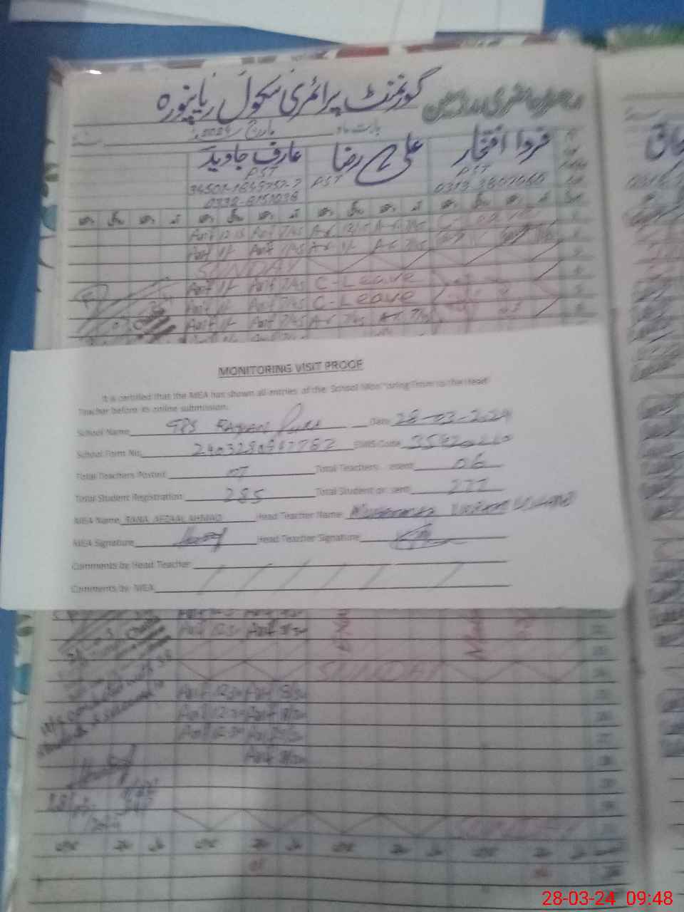 | Attendance Register | Head Teacher | MEA with School | Visit Proof |
