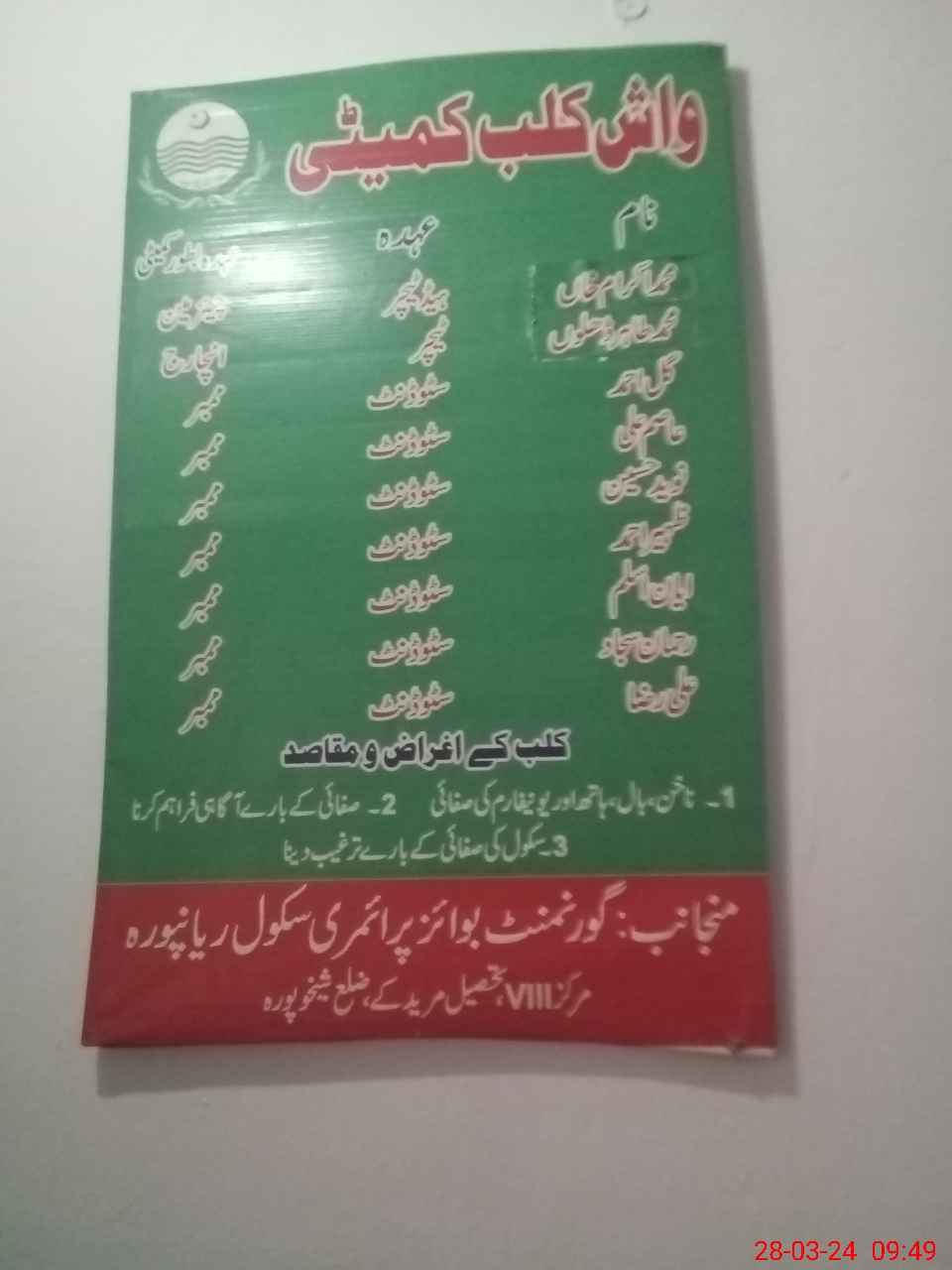 | District: SHEIKHUPURA | Tehsil: MURIDKE | Markaz: BHIANWALA-MALE | Level: Primary | |