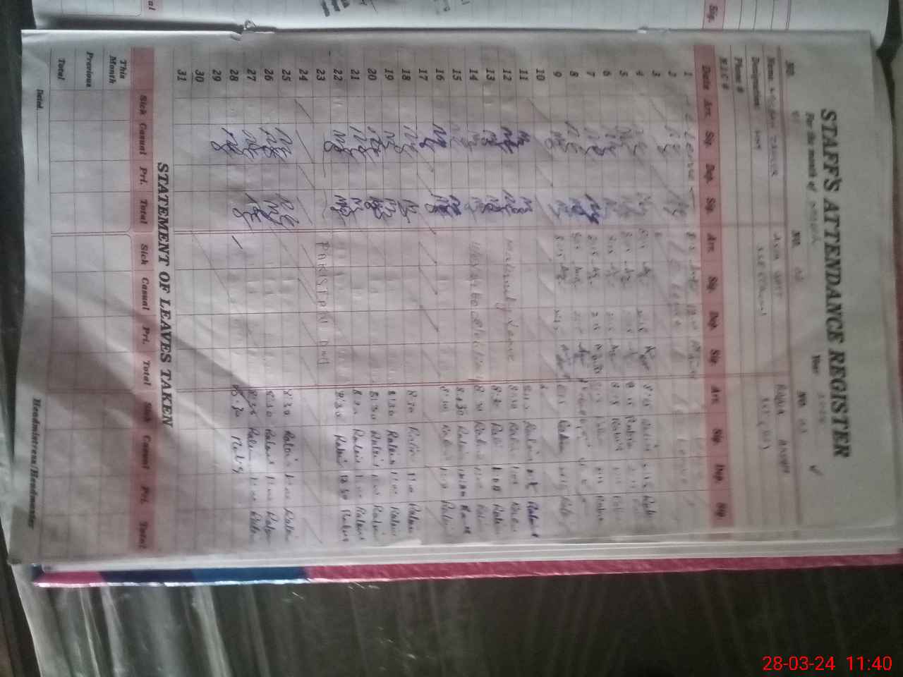 | No. of Students Present - Male | 20 | 0 | 45 | 40 | 38 | 38 | 42 | 40 | 0 | 0 | 0 | 0 | 0 | 263 | ||