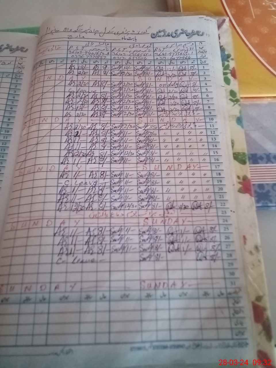 | Name: Wa**** Ab**** Designation: (School Headmaster's/Headmistress's) PST Phone/Cell Number: 03**** |