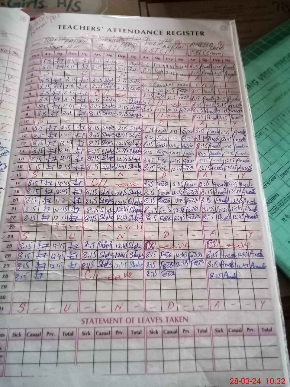| Leave | Duty | Absent | Maternity | Medical | Ex- Pak |