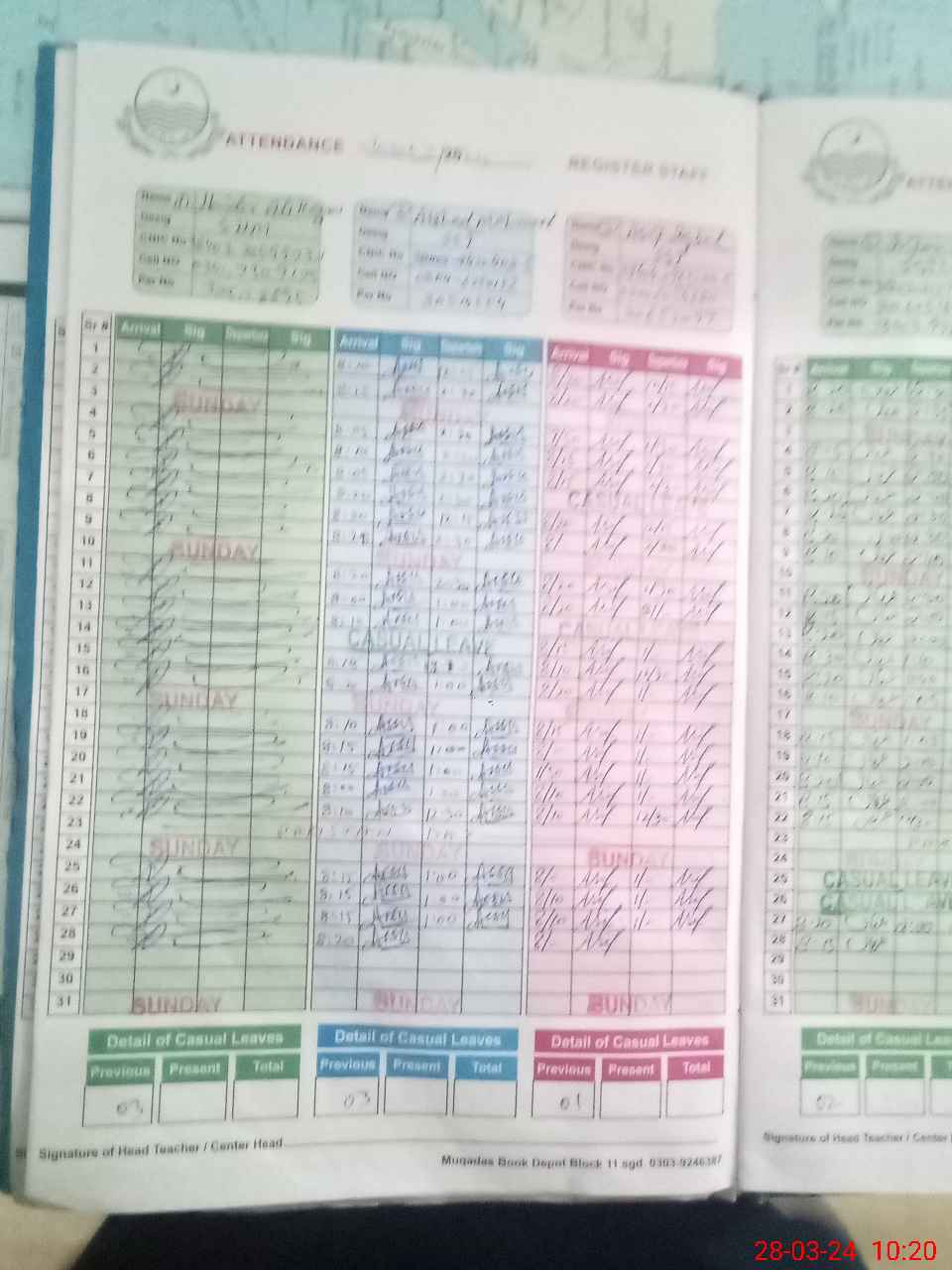 | CNIC | Full Name | Designation | R/C | Absence During Last Calender Month |