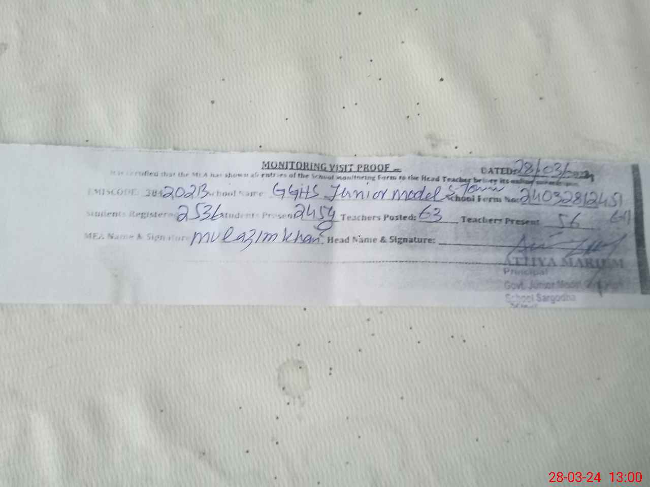 | EMIS Code: 38420213 | Name of School: GGHS JUNIOR MODEL SATTELITE TOWN SARGODHA | |||