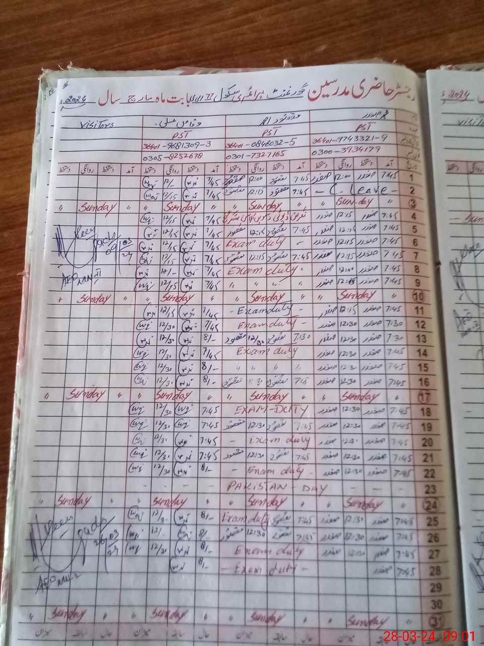 | Name: MA**** AH**** Designation: (School Headmaster's/Headmistress's) PST Phone/Cell Number: 03**** |