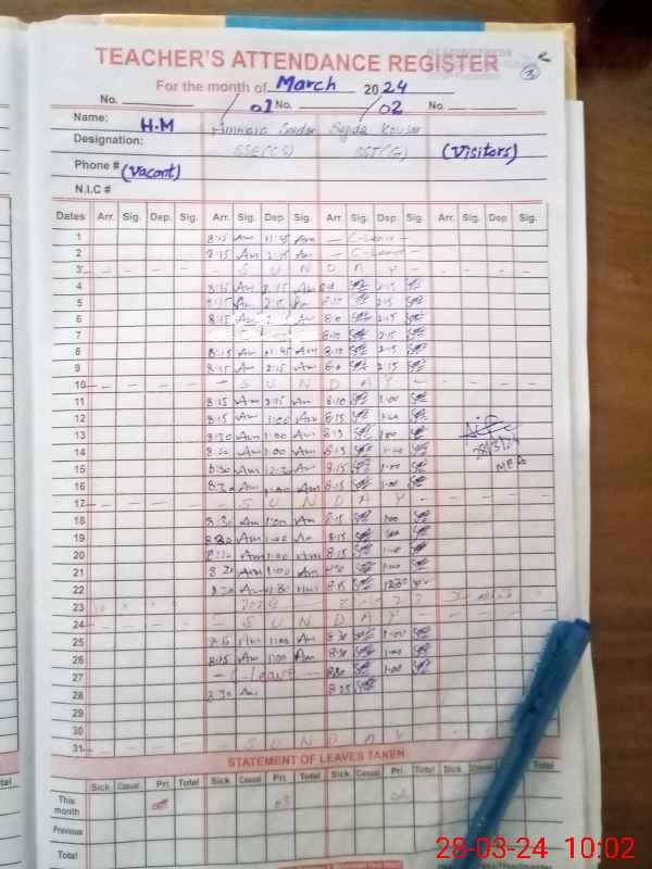 | Name: Am**** Sa**** Designation: (School Headmaster's/Headmistress's) Incharge HM Phone/Cell Number: 03**** |