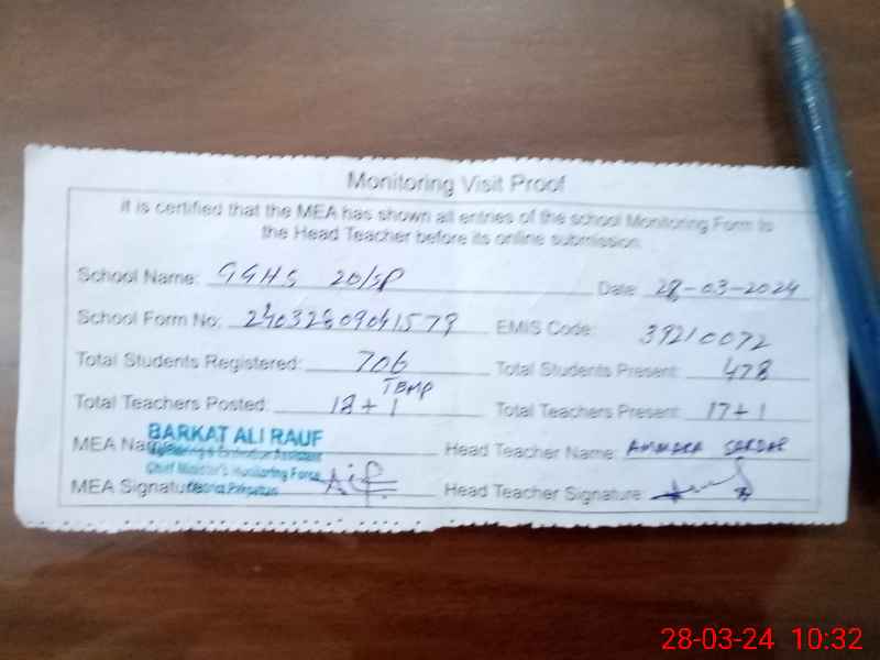 | EMIS Code: 39210072 | Name of School: GGHS 20 SP | |||