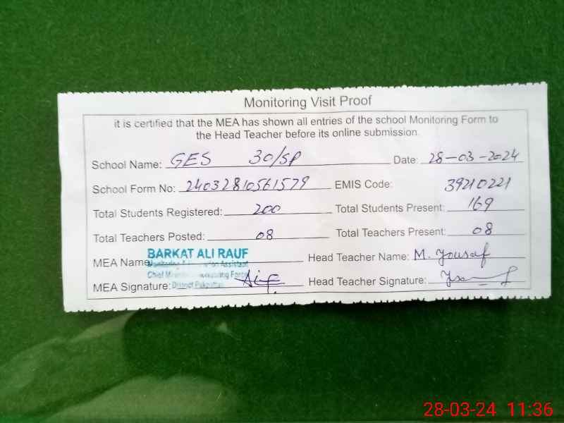 | EMIS Code: 39210221 | Name of School: GES CHAK NO. 30 SP | |||