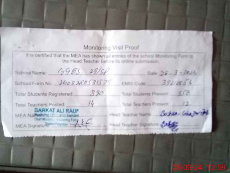 | EMIS Code: 39210054 | Name of School: GGES 29 SP | |||