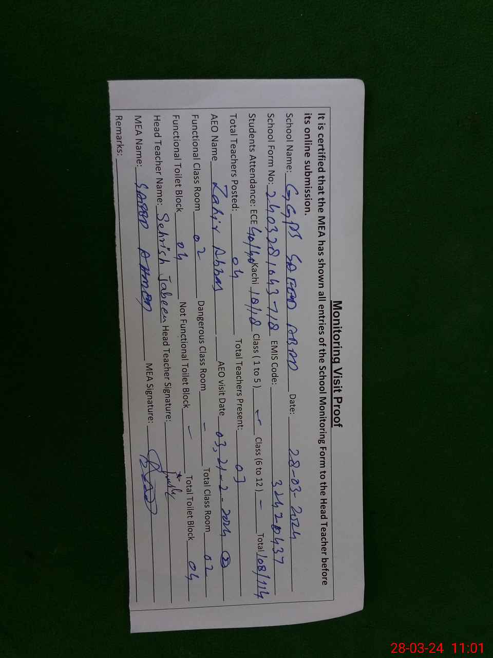 | EMIS Code: 32420437 | Name of School: GGPS SAEED ABAD | |||