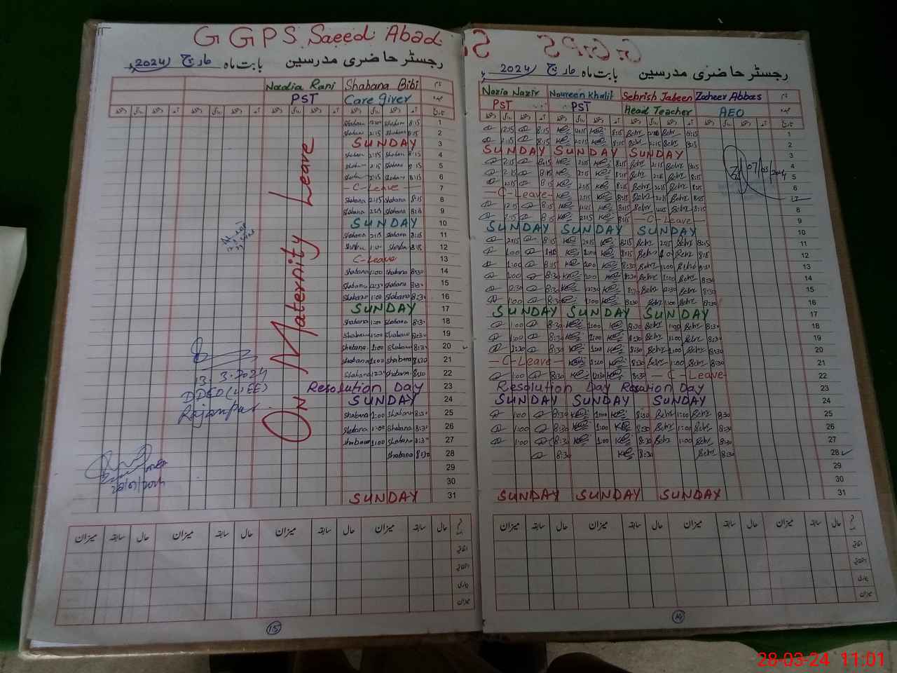 | 32**** | Na**** Ra**** | PST | Regular | 29 | 0 | 0 | 29 | 0 | 0 | 0 | 0 | 0 | Maternity |