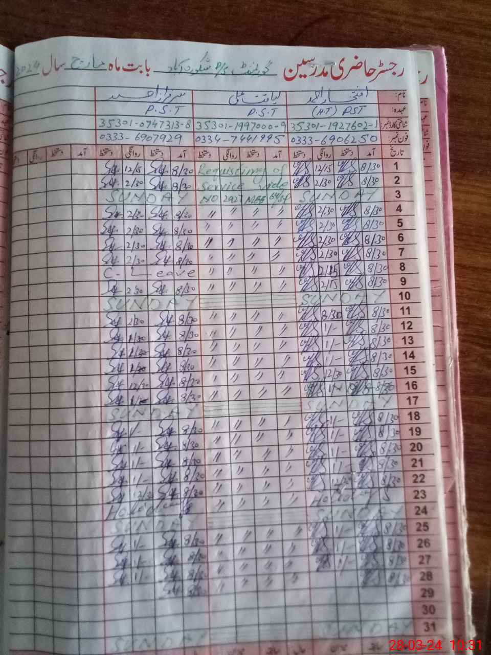 | Name: IF**** AH**** Designation: (School Headmaster's/Headmistress's) PST Phone/Cell Number: 03**** |