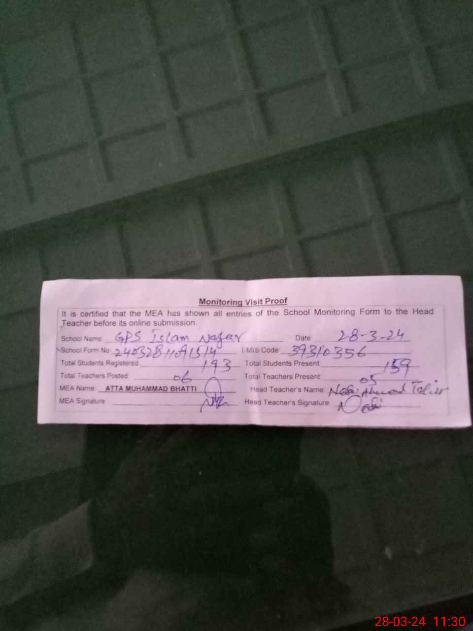 | EMIS Code: 39310356 | Name of School: GPS ISLAM NAGAR | |||