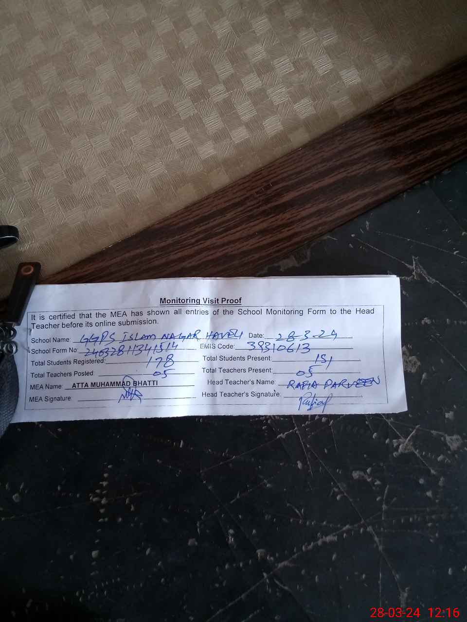 | EMIS Code: 39310613 | Name of School: GGPS ISLAM NAGAR HAVELI | |||