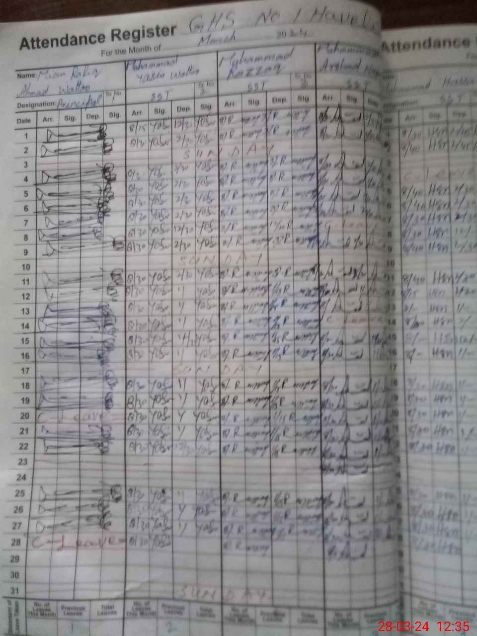 | 35**** | Na**** Iq**** | 3 | 1 | 0 | 0 | 0 | 0 | 0 | 0 | 0 | 0 | 0 | Exam Duty |