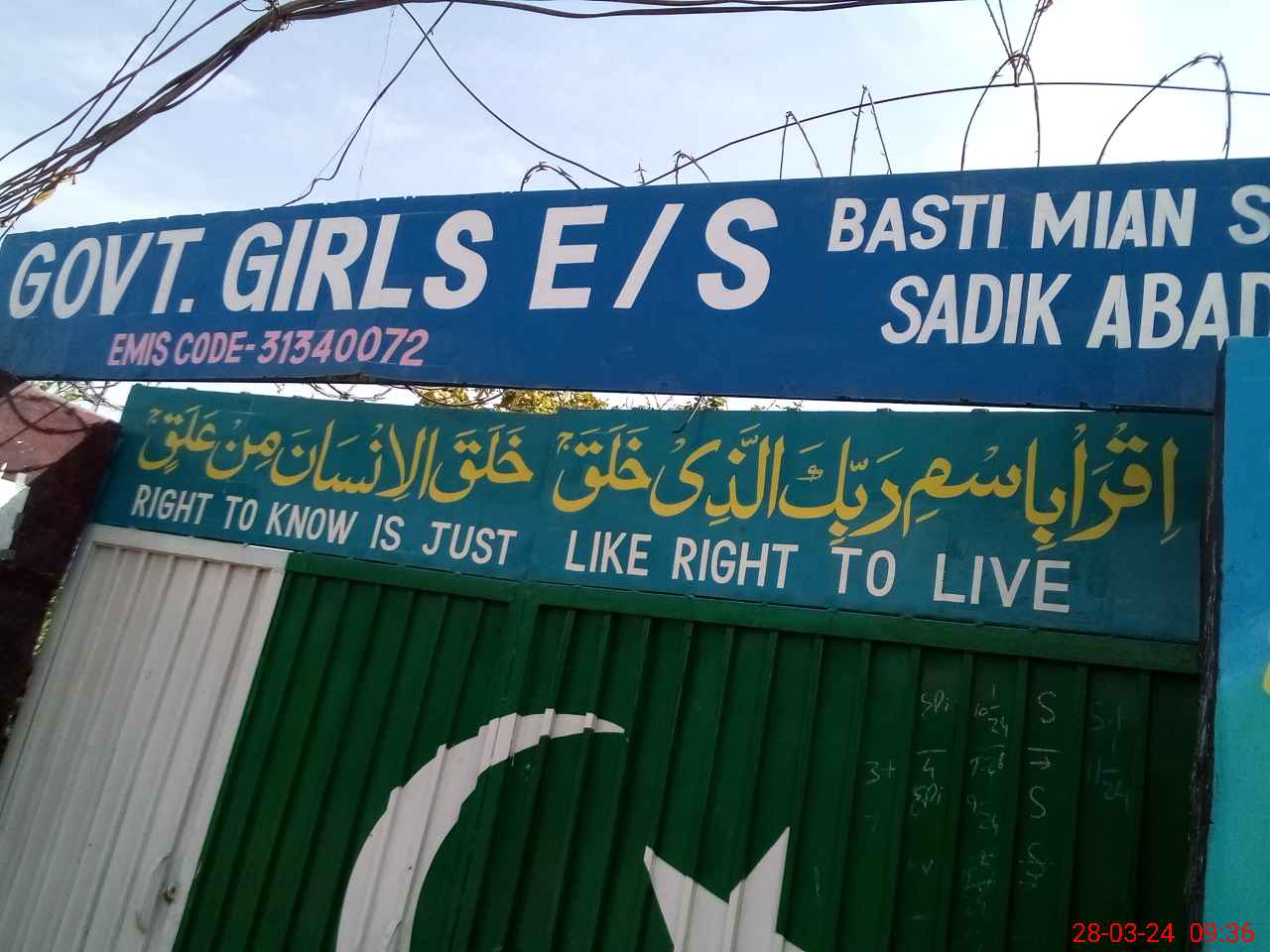 | District: RAHIMYAR KHAN | Tehsil: SADIQABAD | Markaz: SADAR SADIQ ABAD-FEMALE | Level: Middle | |
