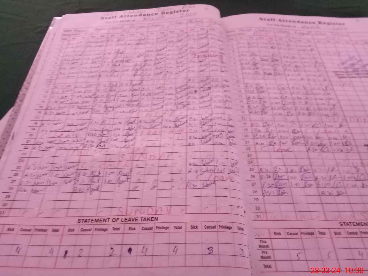 | 31**** | Sh**** Gu**** Na**** | PST | Regular | 2 | 0 | 0 | 0 | 0 | 0 | 0 | 0 | 2 | Exam Duty |