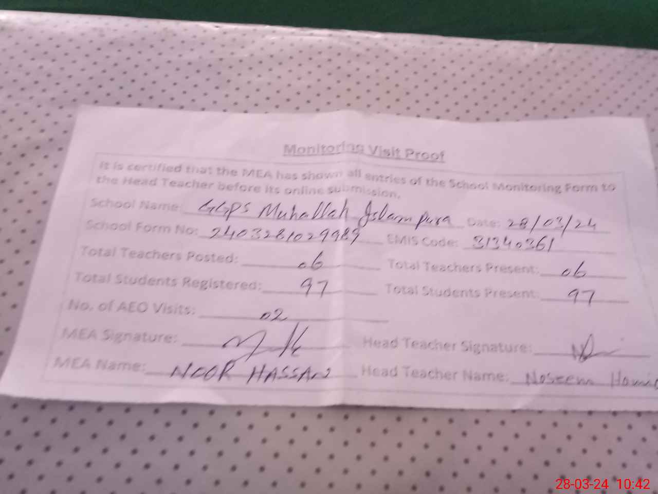 | EMIS Code: 31340361 | Name of School: GGPS MOHALLA ISLAM PURA | |||