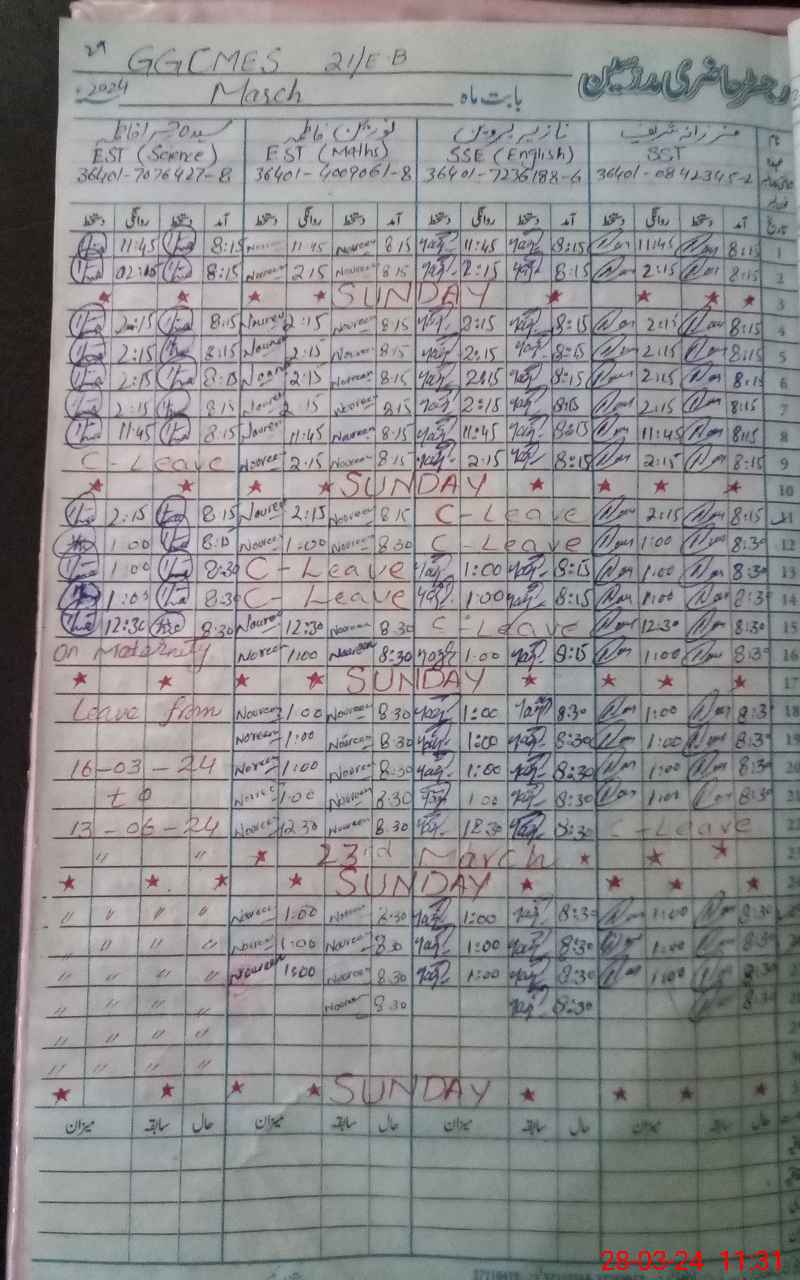 | Name: FA**** SH**** Designation: (School Headmaster's/Headmistress's) SST (GENERAL) Phone/Cell Number: 03**** |