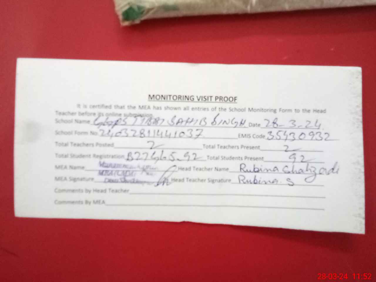 | EMIS Code: 35430932 | Name of School: GGPS TIBBI SAHIB SINGH | |||