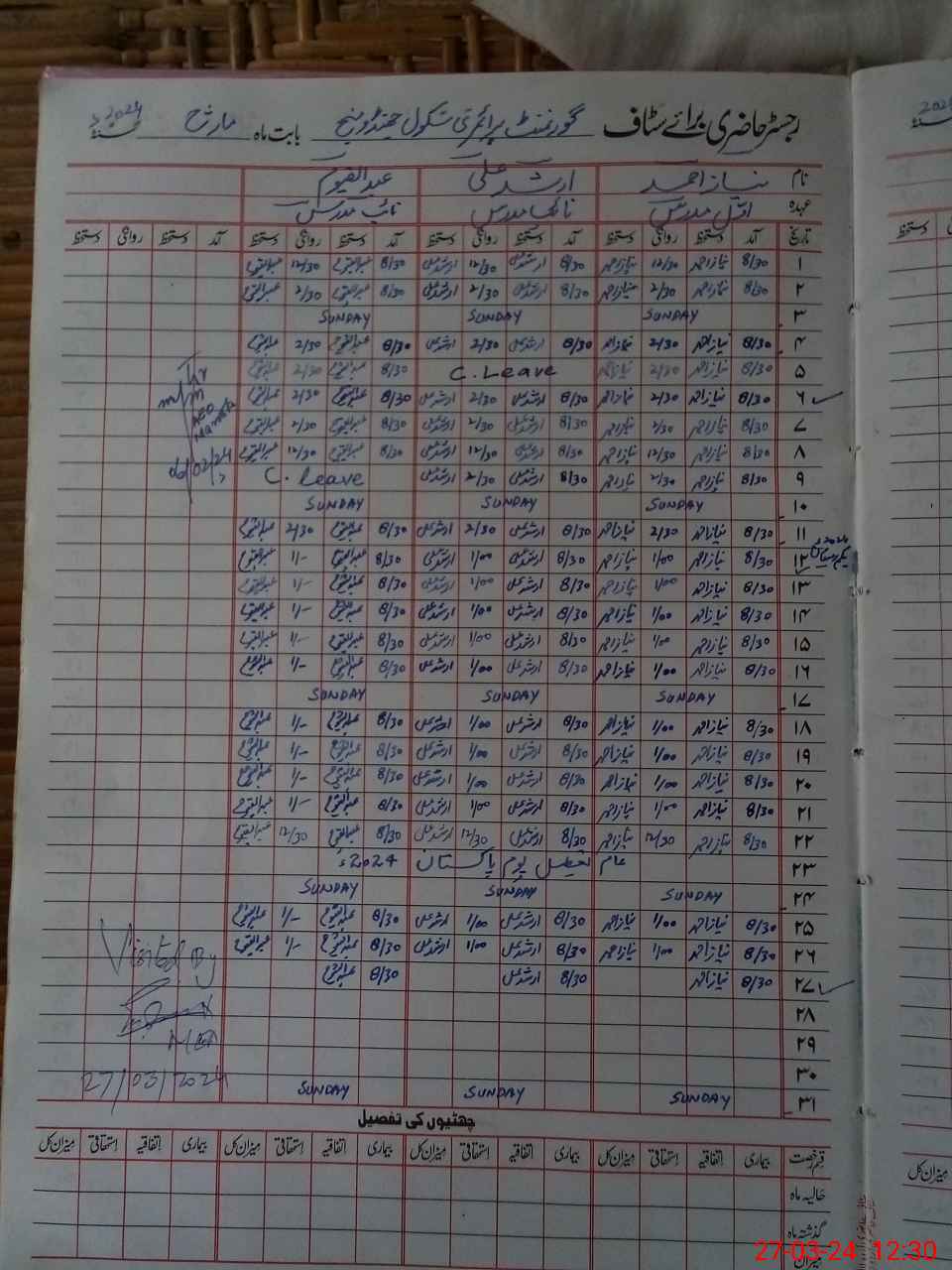 | CNIC | Full Name | Designation | R/C | Absence During Last Calender Month |